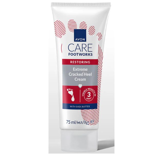 Avon Foot Works Extreme Cracked Heel återställande kräm för spruckna fötter mjukar upp huden, skämmer bort fötterna och gör dem alldeles silkeslena. Inga fler spruckna hälar, sträva partier eller hudförhårdnader!