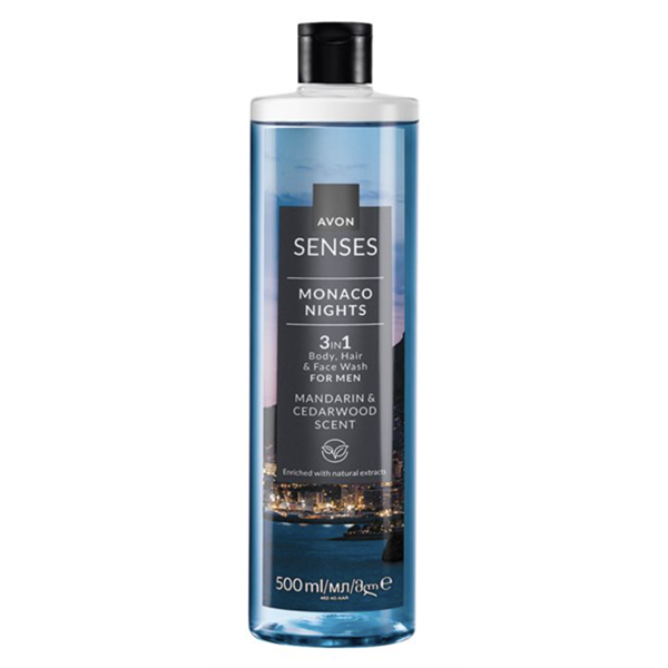 Upplev en elegant duschstund med Avon Senses Monaco Nights 3-i-1 duschgel, där lyx och funktion går hand i hand. Den fängslande doften av mandarin och cederträ rengör och fräschar upp hud och hår, samtidigt som den för med sig en touch av Riviera-elegans. Den är berikad med naturliga extrakt, kommer i en återvinningsbar flaska och räcker till ca 50 duschar. Passar alla hudtyper.